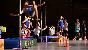 Nach der Pause, in der die TVE-Helfer für die Bewirtung der Gäste sorgten, ging es turnerisch mit der Fördergruppe "einmal um den Globus", gefolgt von den Jazztänzerinnen "New Fellaz". Fünf Kontinente klapperten die Volleyballer mit einem mobile Netz ab und zeigten verschiedene Spieltechniken. Rasant ging es bei der Show der "Ropeskipping"-Gruppe zu, eine moderne Form des Seilspringens. Die Leichtathleten zeigten Hochsprungtechniken, und die zwölf Damen der "Step Machine" repräsentierten zwölf Nationen. Vor dem Finale mit allen Aktiven und vielen bunten Länderfahnen stiegen die Mädchen der Turn-Fördergruppe als turnende und tanzende "Zombies" aus den Gräbern.