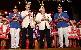 Sechs Stunden Showprogramm mit vielen Höhepunkten Links die "Hallodries", oben v.l. Sitzungspräsident Ralph Brenneis als närrischer Vorturner, Barkeeper Benjamin Müller und fliegende Beine der Prinzengarde. Untere Reihe v.l. die "Nesthocker", Barbara und Rainer Menges sowie Sänger Jürgen Huber im Finale. (Fotos: Hubert Richter)Mehr Bilder (Klicken zum Vergrößern):